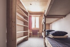 Das Berghostel bietet neun Mehrbettzimmer für bis zu 50 Gäste. Die Duschen und die Toiletten befinden sich auf der Etage. Die Zimmer sind praktisch eingerichtet, bieten genügend Stauraum für Kleidung und ein Fenster mit Aussicht.